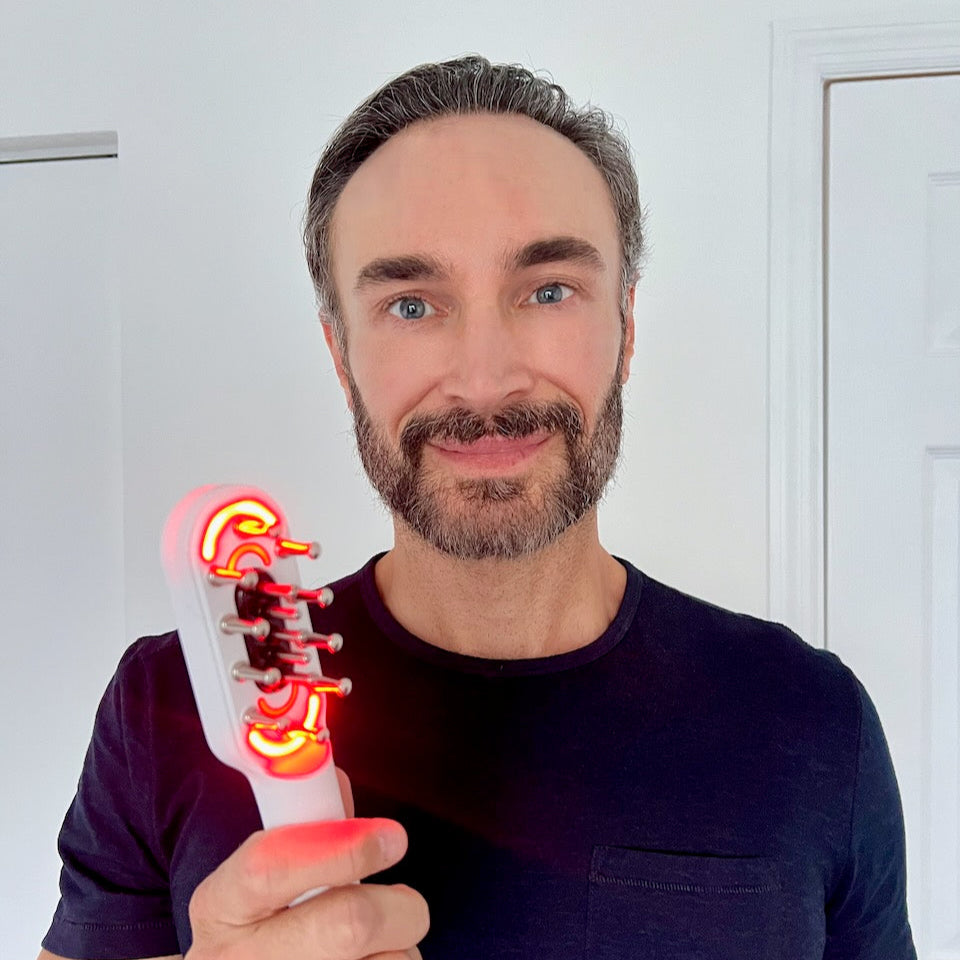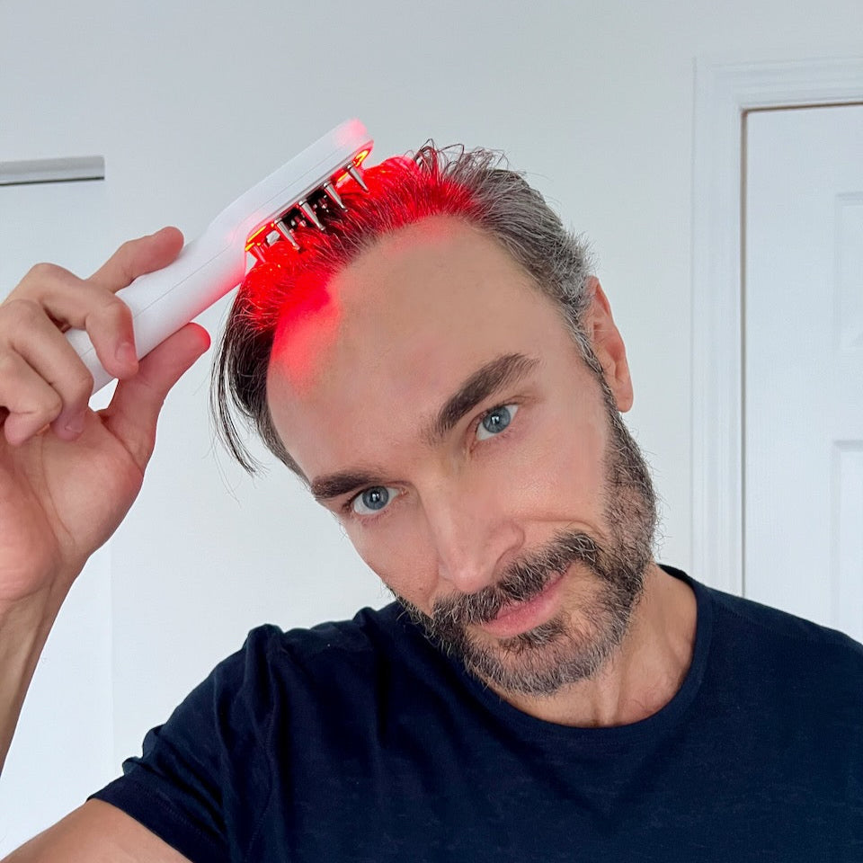 VERT's LED light therapy bathes your scalp in red light wavelengths, penetrating deep into the tissue to energize cells and reduce inflammation. This process helps to extend the growth phase of your hair cycle and can even increase the size of hair follicles. It's like giving your follicles their own personal sun lamp, minus the risk of sunburn!